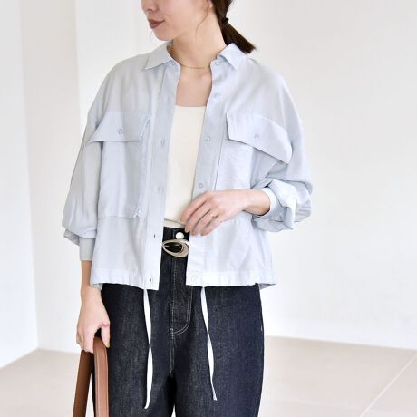 シャツジャケットのように羽織りとしても活躍してくれるショート丈のドロストシャツ。