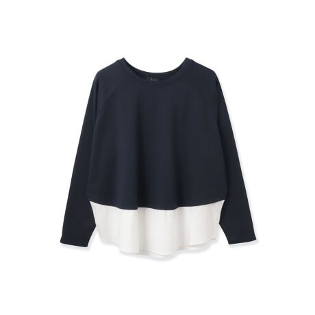 リラックス感のあるラグランスリーブですが、滑らかなテキスタイルで裾部分をカーヴィなラインで切り替えて優しい印象に。