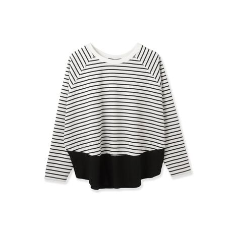 オフホワイトは無地見えの異素材使いに、オフホワイト×ブラックボーダーにブラック生地の切替え、ネイビー×オフホワイトボーダー×オフホワイト生地の切替えの3色展開です。