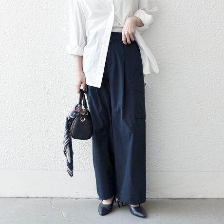 程良い光沢感のある素材が、カジュアルになりすぎず大人っぽく着用いただけます。