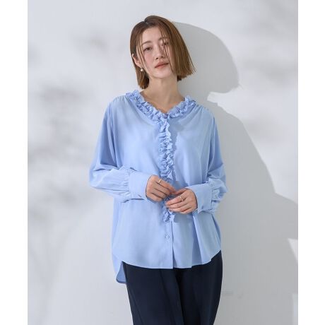 フリルの甘さとシャープなシルエットのバランスが絶妙で、きれいめにもモードにも対応します。