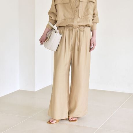とろみのある素材で、大人っぽくラフでリラクシーな印象のワイドパンツ。