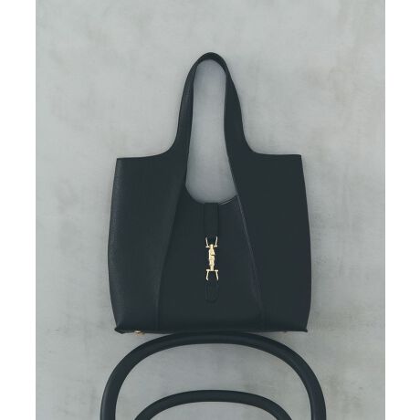 装飾を控えたミニマルなデザインに、ゴールドの金具がアクセントに光るトートバッグ。