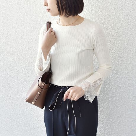 レース使いが手元に華やかさをプラスしてくれるリブニット。