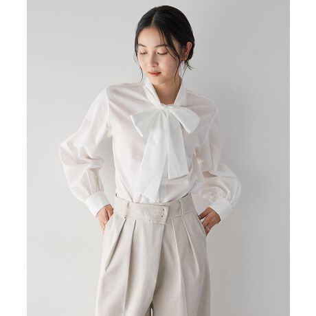 柔らかなボウタイデザインが華やかな印象のシャツ。