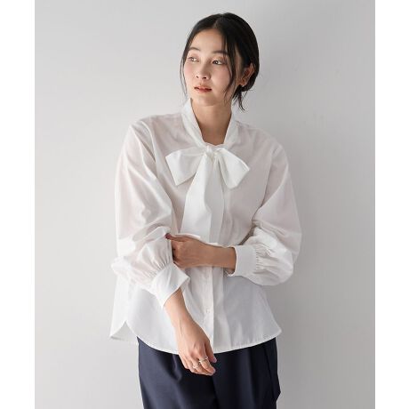 柔らかなボウタイデザインが華やかな印象のシャツ。