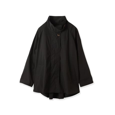 テントラインを描いて、構築的なフォルムがモダンで印象的なコートは、水をはじく撥水加工と花粉汚れ対策機能を付与したテキスタイルを使用しています。