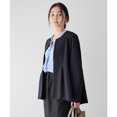 シンプルな中にさりげない表情を持たせた、上品なペプラムデザインのジャケット。