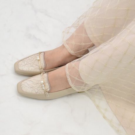 Bridget Birkin◆2.5cmヒール◆レース生地コンビパールビットローファー