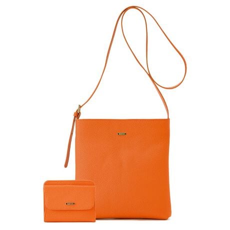 シュリンクレザーで仕立てた定番デザインの牛革財布とポシェットのセット<ルーニア>。