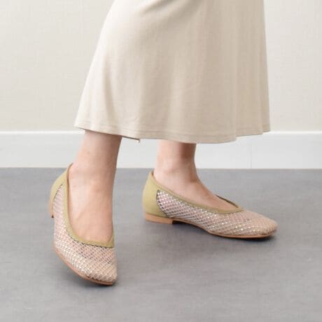 春夏らしい雰囲気のスクエアトウのフラットパンプスが「パラディクルール」から登場しました。