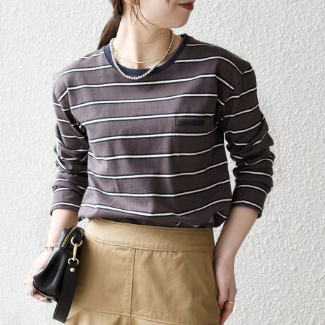 マルチボーダー柄がポイントの長袖リンガーT。