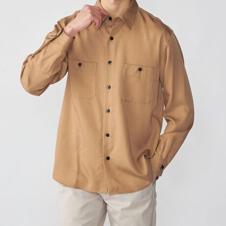 ドレープと光沢が特徴のリヨセルを使用したレギュラーカラーシャツ