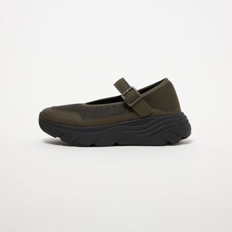 トレンド感のあるメリージェーンデザインをボリュームソールに合わせた一足。