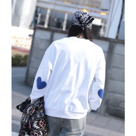 肘にハート形のパッチ付きスウェット。