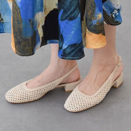 春夏らしい素材感のラウンドトウバックバンドパンプスは、ローヒールのため一日中履いていても疲れづらく、デイリーに履いていただけるうれしい設計になっています。