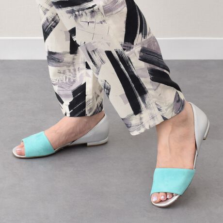 抜け感のあるデザインときれいな配色が春夏らしい異素材コンビパンプスです。