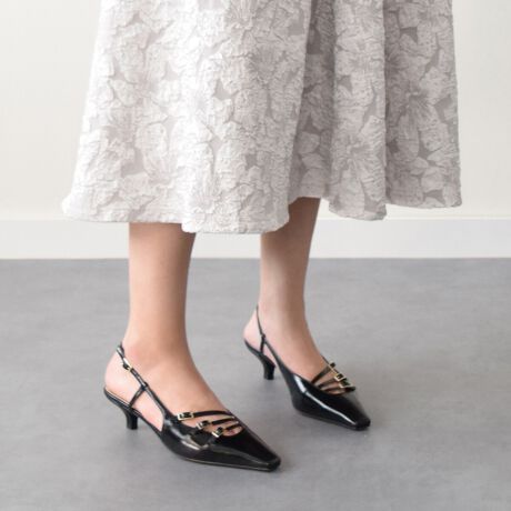 多重ストラップのデザインが特徴的なバックバンドパンプス