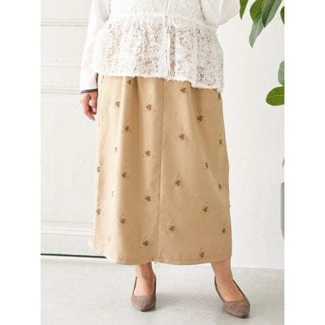 ・立体感のある花刺繍がフェミニンなアクセントをプラス!