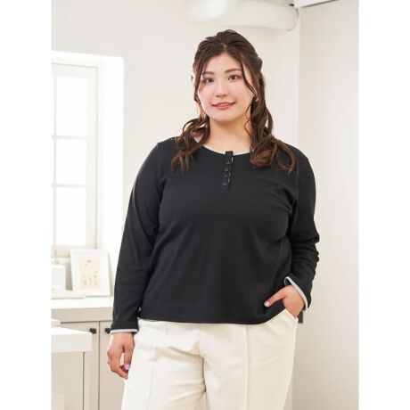 ・顔回りをスッキリと見せてくれるヘンリーネックデザイン!