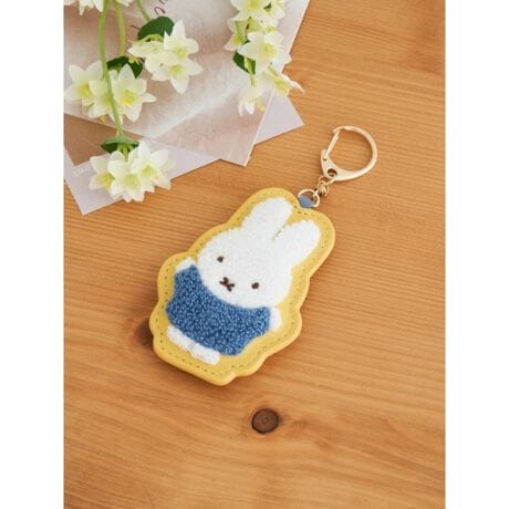フェイクレザー素材にもこもこのサガラ刺しゅうが可愛いミッフィーのキーホルダーイエロー。