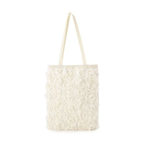 ・立体的なフラワーモチーフが目を惹く、華やかさのあるトートバッグ。
