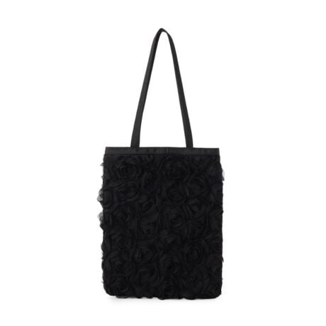 ・立体的なフラワーモチーフが目を惹く、華やかさのあるトートバッグ。
