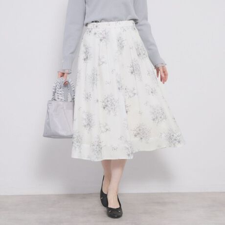 オーガンジーにフラワープリントが華やかなフレアスカート
