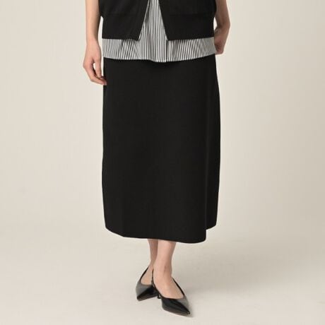 中肉の厚みで程よいハリ感を持つニット素材を使用したゆるいAラインのロングスカート。