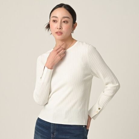 太すぎないリブ幅でカジュアル過ぎず、大人っぽく着こなせる一枚です。