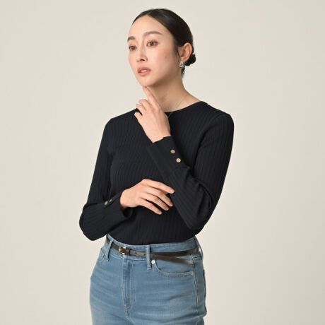 太すぎないリブ幅でカジュアル過ぎず、大人っぽく着こなせる一枚です。