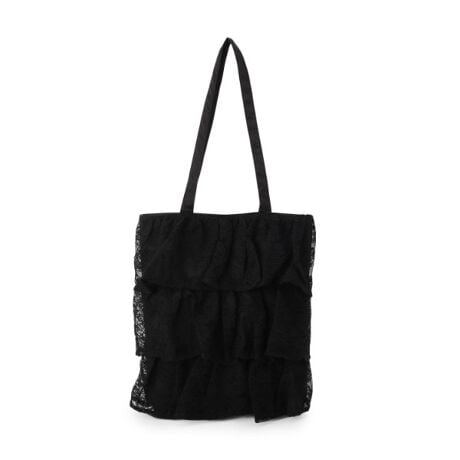 ・レース素材を重ねたティアードデザインが印象的なトートバッグ。