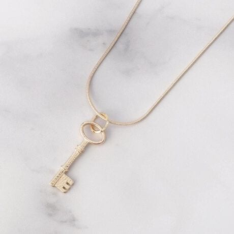 シンプルながら存在感のあるキーモチーフが、コーディネートのアクセントにぴったりなネックレス。