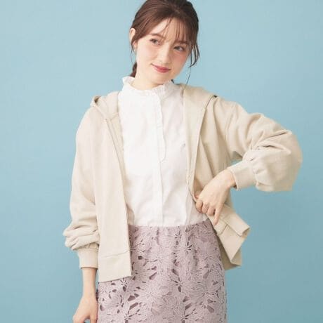 ・キラリと光るラメが施されたコンパクトジップパーカーは、カジュアルながらもおしゃれな雰囲気を演出します。
