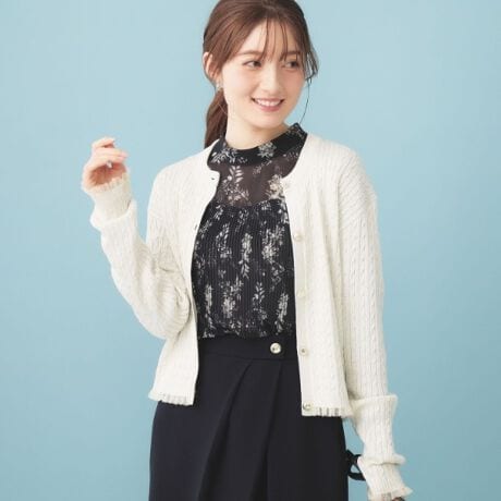 ラメケーブルに繊細なシアーフリルが可愛いカーディガン