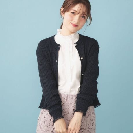 ラメケーブルに繊細なシアーフリルが可愛いカーディガン