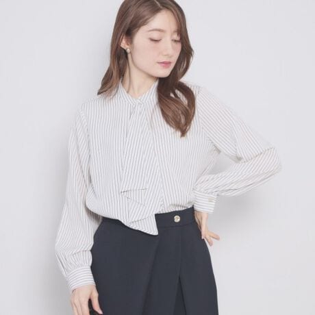 ジャケットのインナーとしてもオススメ!アシンメトリーボウタイブラウス