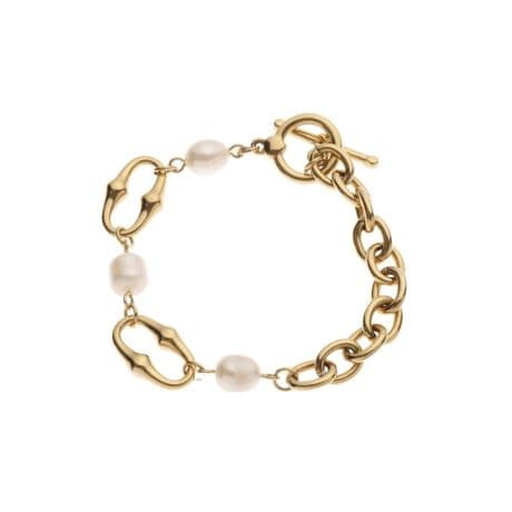 ・オーバル型のゴールドメタルチェーンと淡水パールを組み合わせた、程よい存在感のブレスレット。