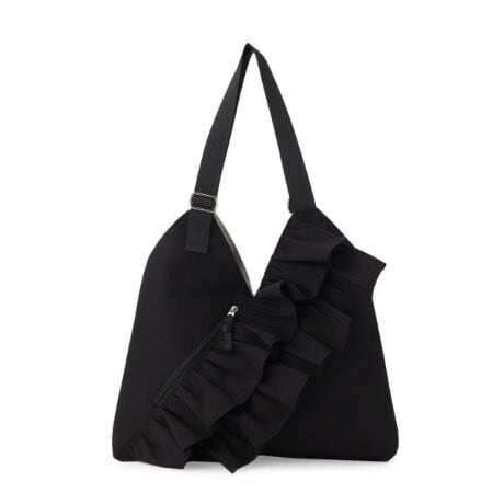 ・アシンメトリーなフリルを効かせた、甘さ控えめの大人モードなデザイン。