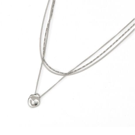 ステンレス素材のレイヤードネックレス。