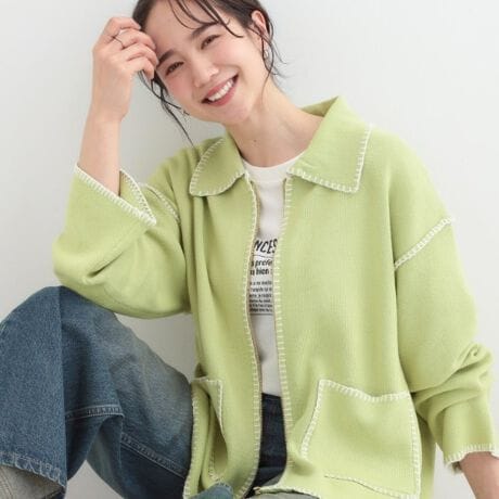 ステッチデザインが華やかなニットカーディガン。