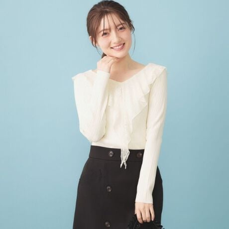 ・トレンドを押さえたVネックに、エレガントなレースフリルが施された独自のデザイン。