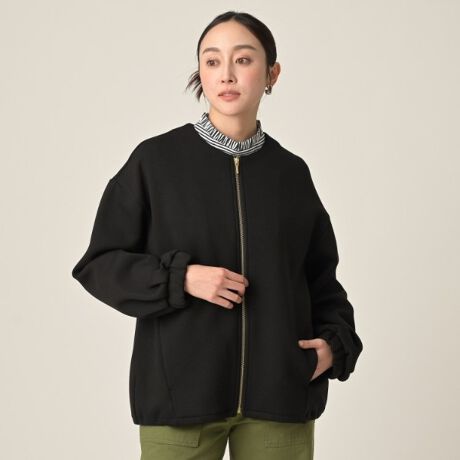 シンプルで使いやすいダンボール素材を使用したジップアップブルゾン。