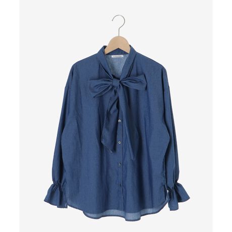 [型番:3062033901]シンプルなデニム素材に華やかなボウタイがアクセント。カジュアルからフォーマルまで幅広く活躍するデニムボウタイブラウスです。上品さとこなれ感を両立させた一枚です。