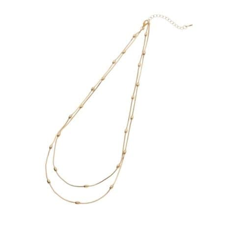 ・長さの異なる2本の華奢なチェーンが、首元に奥行きを与える2連レイヤードネックレス。