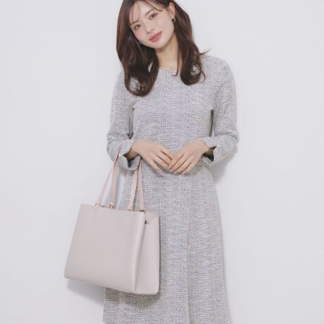 ・ミックスツィード素材で作られたフレアワンピースは、エレガントな雰囲気を醸し出します。