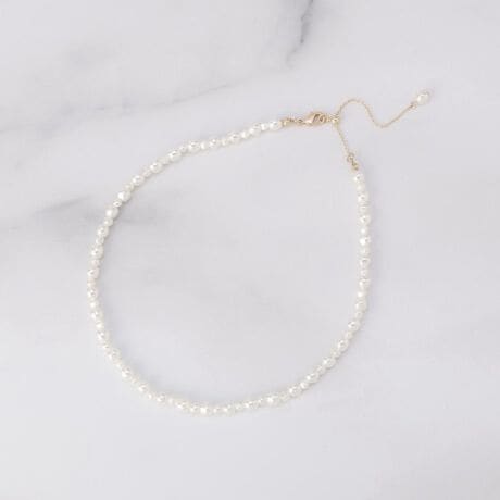 カジュアルにもパーティーにも様々なスタイルにマッチする、変形パール調のネックレス。