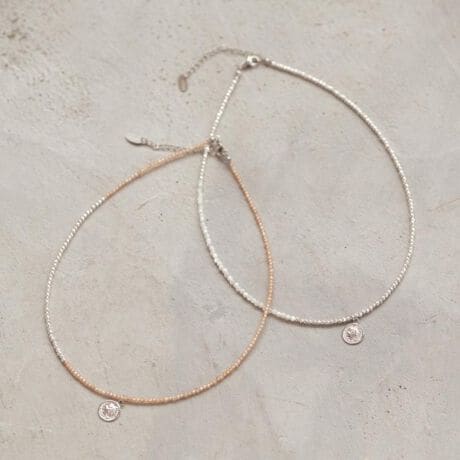ロングチェーンやメタルネックレスと重ね付けすると奥行きが生まれ、きちんと感のあるスタイリングにも馴染みます。