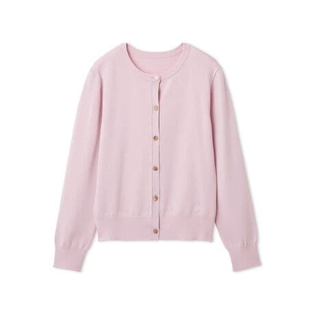 ベーシックに活躍するニットカーディガンは、使い勝手のいいクルーネックに。