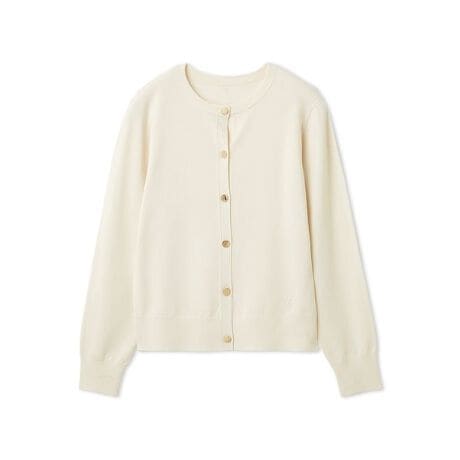 ベーシックに活躍するニットカーディガンは、使い勝手のいいクルーネックに。